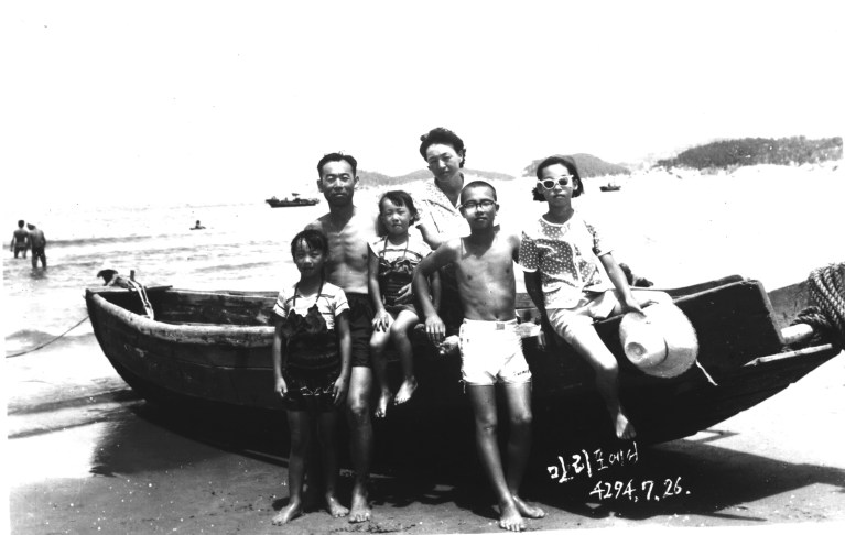 The Kim Family on their annual seaside vacation somewhere beyond Seoul, circa 1960s. My mom is the one in the funky cat-eye shades!