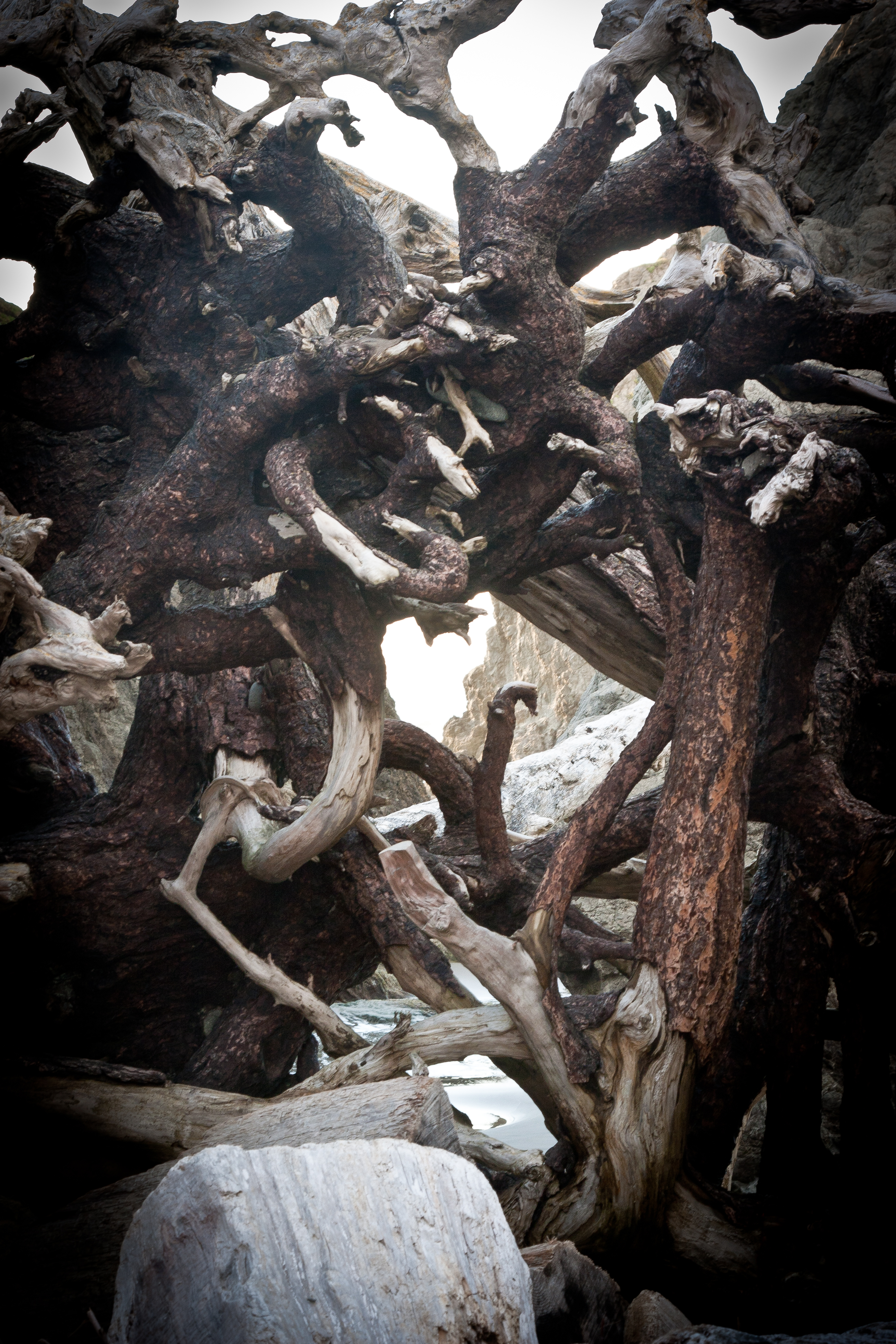 A tangle of driftwood among the rocks. This stretch of beach in Bandon, Oregon, is one of the most amazing intersections of land and sea I've seen. To photograph it at sunset was a gift.