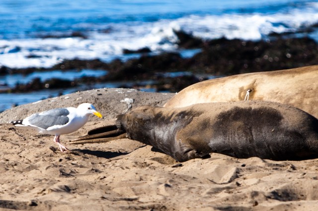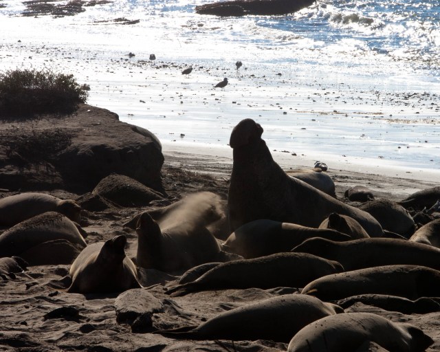 At this time of year, thousands of female northern elephant seals give birth and then nurse their young. The males spend their time defending their harems or plotting sneak-attacks in hopes of capturing and impregnating another’s female. (Not exactly romantic, but, since the elephant seals are thriving, this method seems to be getting the job done.)