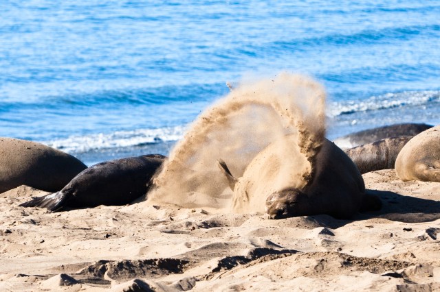 Elephant seals can dive up to 5,000 feet (1,524 m) and stay down there for as long as two hours. The females tend not to hunt as deep as the males, as they’re partial to squid. The boys are, naturally, bottom-feeders and live off the likes of skate and crab.